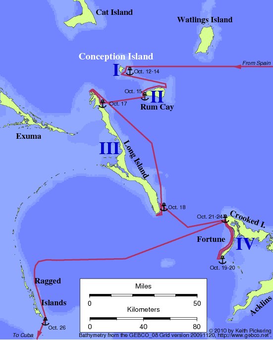 - After departing WSW from the northern point of Island IV, Columbus
