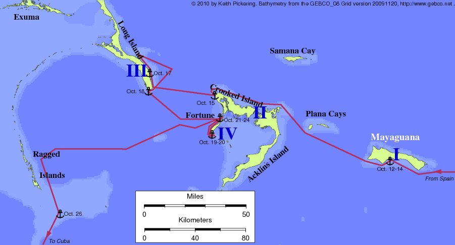 Mayaguana landfall by simply using Varnhagen's route from Mayaguana to